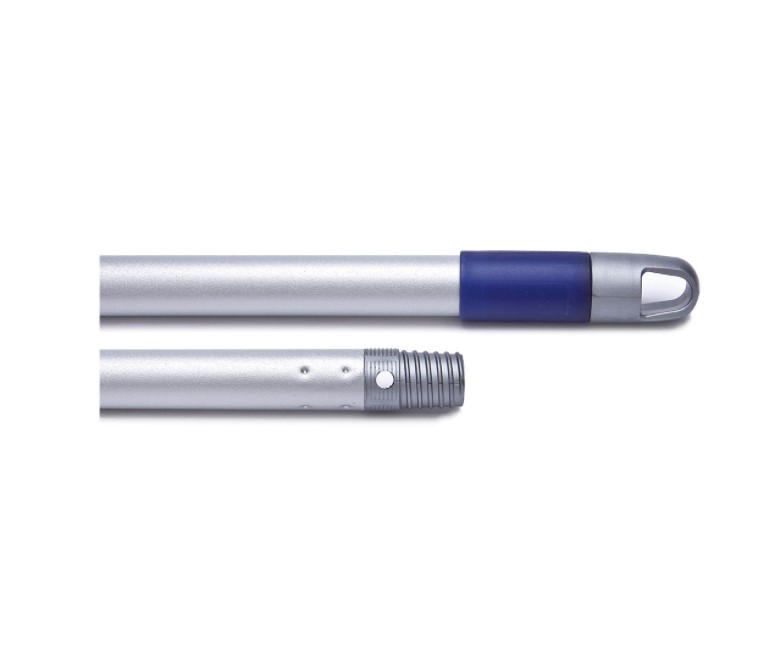 Palo de aluminio barnizado equipado con rosca universal, para fregonas, mopas, escobas y otros útiles de limpieza. Longitud de 1.40 cm.