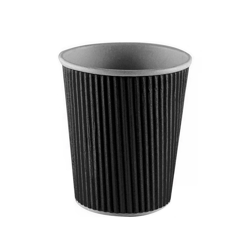 Vasos de cartón corrugado negro, en 240 cc (8 oz).